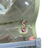 The PVC with lambskin leather trim exterior is in great condition but shows some external dirt marks. The strap is in good condition, with minimal hairline scratches on the hardware.