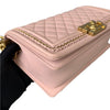 This Chanel Old Medium Boy Bag is crafted in gorgeous pink lambskin leather. It features a chain shoulder strap with a leather shoulder pad and the iconic Boy CC closure. This is a great statement piece for any OOTD and a one-of-a-kind addition to your collection.