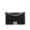This Chanel Old Medium Boy Bag is crafted in a gorgeous black calfskin leather. It features a chain shoulder strap with a leather shoulder pad and the iconic Boy CC closure. This is a great statement piece for any OOTD and a one-of-a-kind addition to your collection.