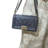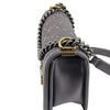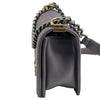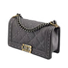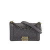 This Chanel Old Medium Boy Bag is crafted in a gorgeous double stitched grey calfskin leather. It features a chain shoulder strap with a leather shoulder pad and the iconic Boy CC closure. This is a great statement piece for any OOTD and a one-of-a-kind addition to your collection.