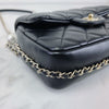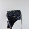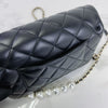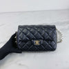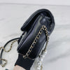 The Chanel Pearl Logo Lambskin Black Flap is refined with diamond quilting, a CC turn lock, and woven chain strap adorned with Pearl details.
