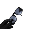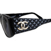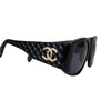 Chanel Vintage Round Tinted Sunglasses in Black Acetate. These sunglasses feature an acetate body and tinted lenses with a quilted detailing on the arms embellished with Chanel’s iconic CC logos.