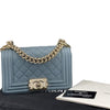 This Chanel Boy in quilted calfskin leather is a rare find. Its small size and colour combination make it the most perfect collectible item for any Chanel collector. The interior features a fabric lining with a single interior pocket. The strap is a combination of leather and gold hardware, making it adjustable to your height and comfort. Our advice: don't hesitate on this one!