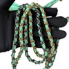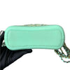 This green Garielle bag is crafted of tweed with diamond topstitches and a sturdy smooth calfskin base. It has a double leather-threaded thin gold tone and ruthenium chain-link silver straps with shoulder pad for that chic and stylish look.