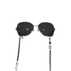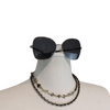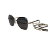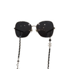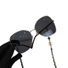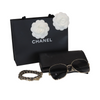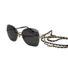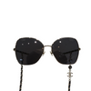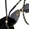 This is an authentic Chanel Sunglasses with Chain in Gold and Black. Featuring a sleek black frame and exquisite gold chain detailing.