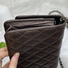 Whether you're out running quick errands or enjoying a night out with your friends, this Chanel Tassel Wallet on Chain is the perfect companion.  Made out of aged calfskin in brown, it's sure to match any outfit.  You can even tuck the strap in and wear it as a clutch. Versatile and luxurious; very classic Chanel!