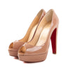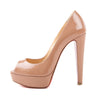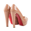 Set on a chunky platform, this beige pair adds some swagger to your strut. Made in Italy from beige patent-leather, this peep-toe pair is finished with the brand's instantly recognizable red lacquered sole. In this versatile colour, these shoes pair well with your favorite dress.