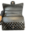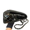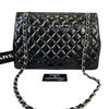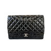 Indulge in a classic and timeless style with this Chanel Double Flap Maxi bag in a knockout black Patent leather and silver toned hardware.