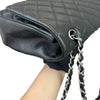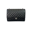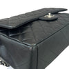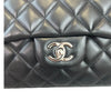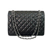 Indulge in a classic and timeless style with this Chanel Single Flap Maxi bag in black lambskin leather and silver toned hardware.