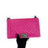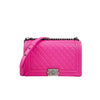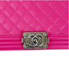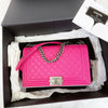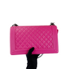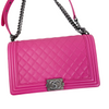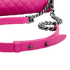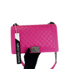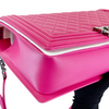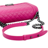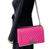 This New Medium Boy bag features a hot pink quilted lambskin leather and gokd-tone hardware. This roomy classic features a full front flap with a CC push lock closure that makes sure all your essentials are secure. Feminine with just a touch of edge; a perfect addition to your luxury collection!