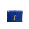 French fashion house Saint Laurent excels at creating lust-worthy accessories infused with the label’s indisputable Parisian elegance. Expertly crafted in Italy from forest blue smooth calf leather, this Saint Laurent Quilted Envelope Medium Bag features a foldover top with magnetic closure, an adjustable shoulder strap, a diamond quilted finish, a black toned logo plaque and an internal slip pocket.