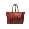 This Goyard Saint Louis Tote Bag features a Chevroches Calfskin & Goyardine Canvas body, flat leather handles, and a detachable canvas pouch. This highly sought-after bag is the perfect combination of luxury and casual sophistication. Goyard bags are known for their exclusivity and popularity among celebrities. What makes the Anjou bag special is its reversible feature. You can choose between the canvas and grained leather.