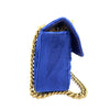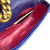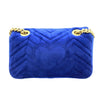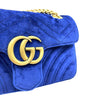 The Mini Gucci GG Marmont bag has a softly structured shape and a flap closure with Double G hardware. The sliding chain strap can be worn multiple ways, changing between a shoulder and a top handle bag. Made in matelassé velvet with a heart on the back.