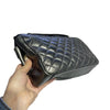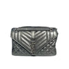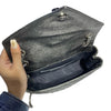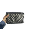 This Saint Laurent Small Envelope bag is a stunning addition to your wardrobe. This beauty features a front flap adorned with the signature interlaced YSL initials in Silver Toned hardware, a silver chain and leather strap, and beautiful grained calfskin leather in both chevron and diamond-quilted stitching. The interior features one slot pocket perfect for your essentials.