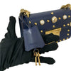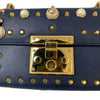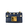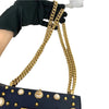 The Gucci Small Padlock Bag features a studded leather body, a gold-tone chain strap, a front flap with magnetic snap closure, and an interior zip pocket.