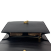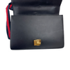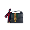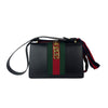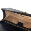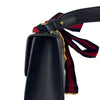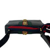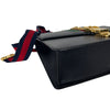The Gucci Sylvie shoulder bag features a leather body, a front flap with buckle accented flip-lock closure, interior zip, and detachable torchon shoulder strap. The bag's chic black color makes it an essential staple in your wardrobe that is not only easy to fit with any outfit, but also very portable.