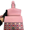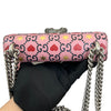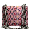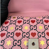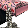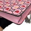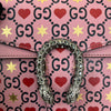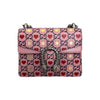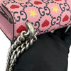 This is an authentic Gucci Valentine's Day Exclusive Dionysus Mini Calfskin Bag. This stylish bag is crafted of pink leather. This bag features red and gold stars, an aged ruthenium chain strap, and a textured horseshoe tiger spur closure. Its flap reveals a beige interior for a chic look.