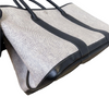 The Hermes Garden Party 36 Grey Toile & Black Leather features a durable canvas body with textured leather details, palladium silver snap, solid black leather base, rolled handles, and a top clasp closure. It features a casual, yet stylish look, perfect for a weekend quick getaway without missing an aura of luxury!