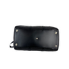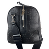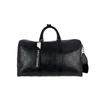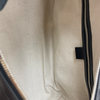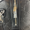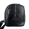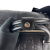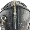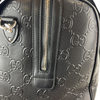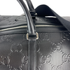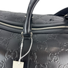This duffel bag features an all over embossed GG black Italian leather body, flat strap, top handles, and a fabric lining.