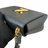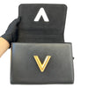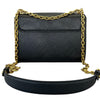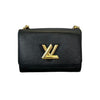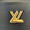 This is an authentic Louis Vuitton Epi Twist Shoulder Bag MM in Black. This stylish black shoulder bag is made of textured epi leather. It has a gold tone chain strap with a comfy leather pad and a polished LV twist lock. This opens to a black microfiber interior with patch pockets.