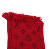 This an authentic Louis Vuitton Logomania Silk Wool Scarf in Red. Stay cozy with this chic scarf made from 94% wool and 6% silk. It showcases the classic Louis Vuitton red monogram.