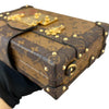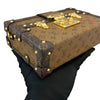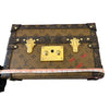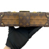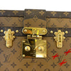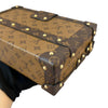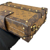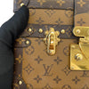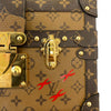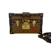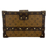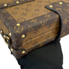 This is an authentic Louis Vuitton Petite Malle Reverse Monogram in Brown. This stylish trunk bag is crafted of Louis Vuitton monogram on toile canvas. The shoulder bag features an optional, adjustable leather shoulder strap, matching leather trim and gold tone studded hardware at the joints with buckles and a gold tone press lock.