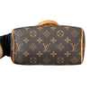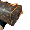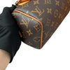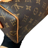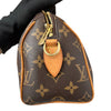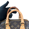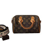 This is an authentic Louis Vuitton Speedy Bandouliere 20 Monogram in Brown. This bag is made of Louis Vuitton's iconic monogram canvas, with leather handles, a colorful fabric strap, and gold hardware for a timeless look. The top zipper opens to a red fabric interior with a patch pocket.