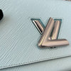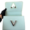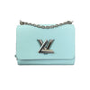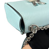 This is an authentic Louis Vuitton Twist MM Summer Splash Calfskin in Blue. This stylish shoulder bag is crafted of Louis Vuitton calfskin with a neon monogram design in blue. The bag features a bold design and a large blue twist LV closure on the facing flap. This opens to a matching microfiber interior with pockets.
