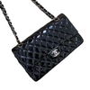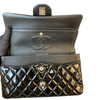 This gorgeous Chanel Medium Flap in black patent leather is a classic piece that doubles as a statement accessory for an OOTD! It features sleek, shiny patent leather and bright silvertone CC turn-lock closure. Wear it with jeans or an evening dress, and look fabulous without even trying.