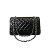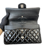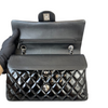 This gorgeous Chanel Medium Flap in black patent leather is a classic piece that doubles as a statement accessory for an OOTD! It features sleek, shiny patent leather and bright silvertone CC turn-lock closure. Wear it with jeans or an evening dress, and look fabulous without even trying.