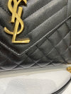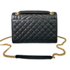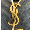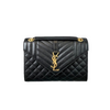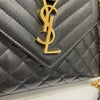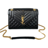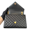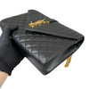 This Saint Laurent Medium Envelope bag is a stunning addition to your wardrobe. This beauty features a front flap adorned with the signature interlaced YSL initials in Gold-Toned Hardware, a gold chain and leather strap, and beautiful grained calfskin leather in both chevron and diamond-quilted stitching. The interior features a one slot pocket perfect for of your essentials.