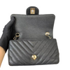 Treat yourself to this luxurious Black Chanel Mini Flap Bag in Chevron. Made from exquisite Chevron quilted Caviar leather, this bag is truly a gorgeous classic by Chanel. This bag comes with a strap which features interwoven gold toned chain link. The interior offers one compartment for all your essentials, as well as one a slip pocket.