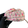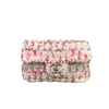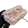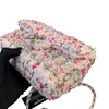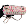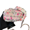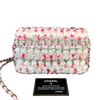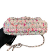 This rare Chanel mini flap bag is crafted in tweed, a perfect homage to Chanel's iconic suits, and is accentuated with silver toned hardware, prominent Chanel CC turn lock clasp and a long chain strap.