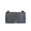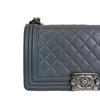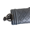 This Chanel Old Medium Le Boy in Grey with bag features beautiful quilted lambskin leather and ruthenium hardware. The iconic Chanel Boy Bag can be worn either as a shoulder or crossbody bag.