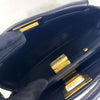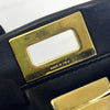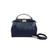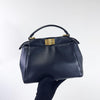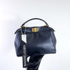 This Mini Fendi Peekaboo bag is made of black smooth leather, and adorned with the classic twist lock on both sides. Featuring a leather lining with two compartments separated by a stiff partition, an inner zip pocket and gold-finish hardware. The bag can be carried by hand or worn either on the shoulder or cross-body thanks to the handle and adjustable, detachable shoulder strap.