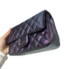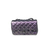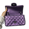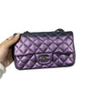 This beautiful Chanel Mini Rectangle in Iridescent Purple Lambskin leather with silver hardware is essential to freshen up your wardrobe. The colour is seasonal and very rare. Try it on with a floral ensemble or dress it up for the evening with a great Blazer and Jeans. This versatile piece is a must-have and most definitely a statement maker. The woven leather strap allows for hands-free shopping, day-to-day errands, or a night on the town.