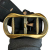 Featuring a unique smooth and ridged brass buckle, this Roberto Cavalli belt offers your look a touch of minimal luxe. Pair it effortlessly with your favourite trousers or let it be your subtle staple piece that holds up your dressiest slacks.