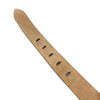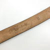 Hardware has an antiqued look to it. Suede has few marks that can be brushed out. Napp on suede has signs of wear. Leather on backside of belt has slight patina and a few marks.