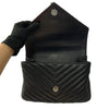 This versatile shoulder bag features the iconic YSL logo on the front and has been marvelously designed with chevron quilted leather. The bag features a long chain strap, a short satchel handle, and a slip pocket. The interior is perfect for holding all your essentials.