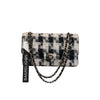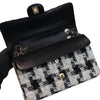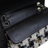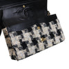 Dress up your everyday essentials in a gorgeous Rare Tweed Medium Classic Flap Chanel bag. This stylish flap bag is a brilliant eye candy and is crafted from woven fine tweed in black and white/beige accents. It has gold leather-threaded chain-link shoulder straps.
