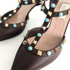 VALENTINO Rockstud 65 Heels 38 Brown with Turquoise Stones – Bag Religion
