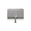 This Crocodile Embossed Calfskin Medium Classic Monogram Kate Tassel Satchel Mouse Grey from Saint Laurent is a stunning piece made from crocodile embossed calfskin leather. It has a polished silver chain link crossbody shoulder strap and a flap with a polished silver signature YSL logo that has a silver knobbed miniature silver chain tassel.
