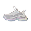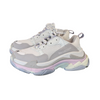 Balenciaga Triple S Sneakers in Blue, size 38. A bold departure from minimalism, these chunky sneakers combine materials for a distinctive look. Featuring a pink blue and purple pastel coloured sole, bold details, iconic label, and bicolor laces.