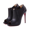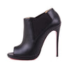 The Christian Louboutin Bootstagram Peep Toe Booties are the perfect transitional shoes. The architectural silhouette is an edgy twist on Louboutin's feminine style, while matte black makes for a timeless aesthetic. Crisscross side stretch insets make these an easy pull-on pair for daily use. Wear yours with a simple black dress or mini-sundress for a perfect spring outfit.