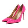 What better way to celebrate everyday than to dress your feet up in a pair of beautiful, classic Decollete Python pumps? Its signature pointed-toe silhouette and sleek stiletto heel is the epitome of killer femininity. We love the contrast between this bold fuchsia exterior with the classic Louboutin red sole – and a gorgeous python finish to boot!