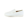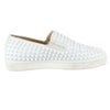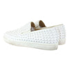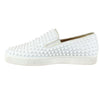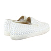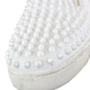 This is an authentic pair of Christian Louboutin Spikes Mens Roller Boat Flat Calfskin White in Size 42. These stylish men's loafers are made of textured calfskin leather, featuring white studs along the edges and a white rubber base.