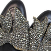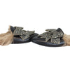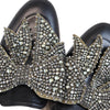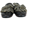 Flat Mules Crystal Embellished Leather and Fur Black Size 38