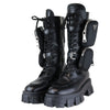 Pouch Pocket Tall Combat Boots Calfskin Black Size 38