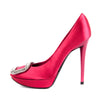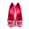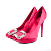 Roger Vivier’s shoes are decorated with its signature metallic rectangle plaque. We love the twist on a classic on these Roger Vivier Belle De Nuit Pumps in Pink Satin, with its crystal-studded buckle and bold fuchsia satin finish. The square toe silhouette also adds an edgy yet sophisticated look. Wear yours to amp up a classic LBD or with power suit combo.
