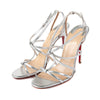 With dainty crisscross straps, Christian Louboutin Youpiyou sandals are perfect for the fashionistas who are looking for an elegant accessory for nights out or special soirees.  The soft silver exterior complements Louboutin's classic fire red sole perfectly for a sultrier aesthetic.  They also feature an adjustable ankle strap for easy wear.